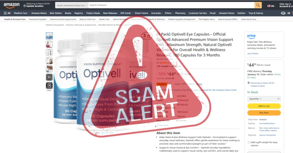 Unfortunately, many people get scammed when ordering OptiVell because they do not purchase from the official website. Some individuals choose to buy OptiVell on Amazon due to the lower price, but end up receiving fake or unauthorized bottles.